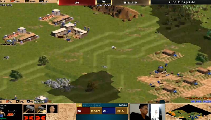 Sau khi kết thúc giải AoE Miền Nam Open 4 mà không mang về danh hiệu nào, U98 ngay lập tức lao vào những trận đấu luyện tập. Đối thủ lần này của U98 là game thủ trẻ 2K1 Bắc Ninh đang rất tiến bộ. Không ngoài dự đoán, cuộc đối đầu giữa U98 và 2K1 Bắc Ninh kết thúc với chiến thắng cách biệt 3-0 về C dành cho game thủ U98. Nhưng không vì thế mà kèo đấu này trở nên tẻ nhạt hay kém hấp dẫn. Vẫn có điểm sáng chính là trận cầm Sumer kinh điển của game thủ U98 khiến ai xem cũng trầm trồ thán phục.