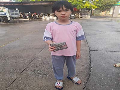 Theo tìm hiểu, đây là bức ảnh của công an huyện Lục Yên, tỉnh Yên Bái chụp 1 bé gái nhặt được ví mang đi trả lại.
